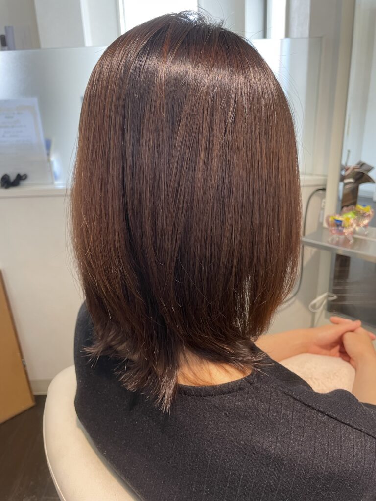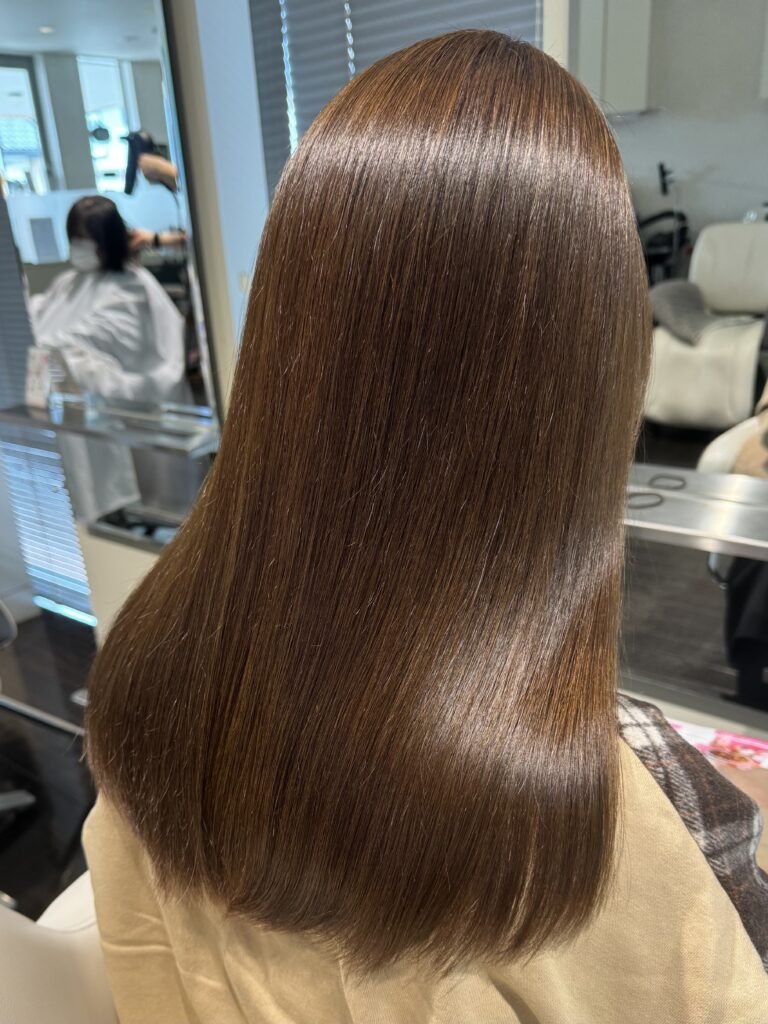 ずっと気になっていた髪質改善をやってもらいました。 ドライヤーの後も広がっていた髪がサラサラです。 剛毛、多毛、癖毛ですがこんなにサラサラで綺麗な髪になれたのは初めてです! また髪が伸びてきたらお願いしたいです。