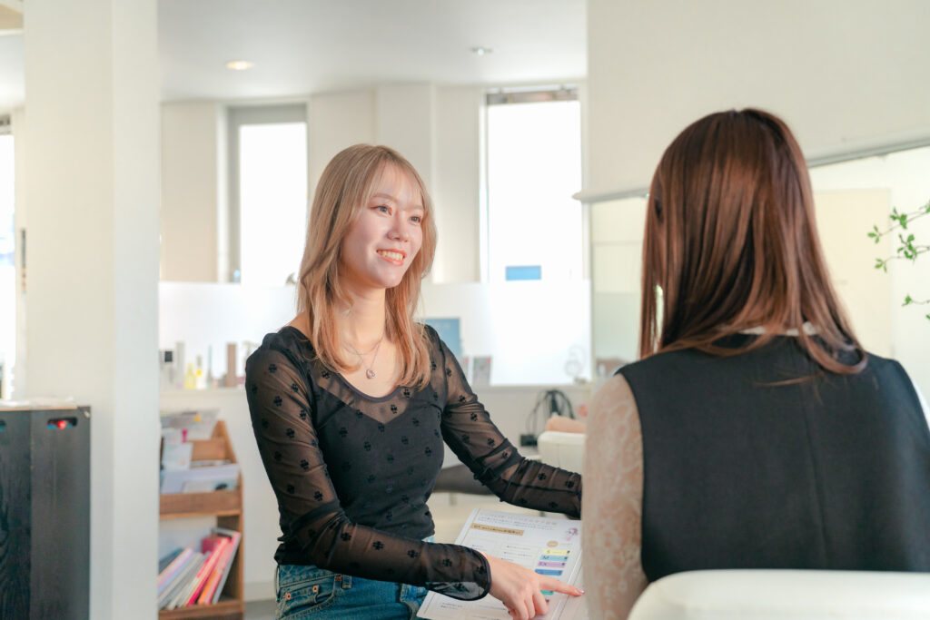 お客さまにあった通い方の説明をしっかりとさせていただき、次回以降も艶髪をキープするための最適なプランを一緒に決めていきます。